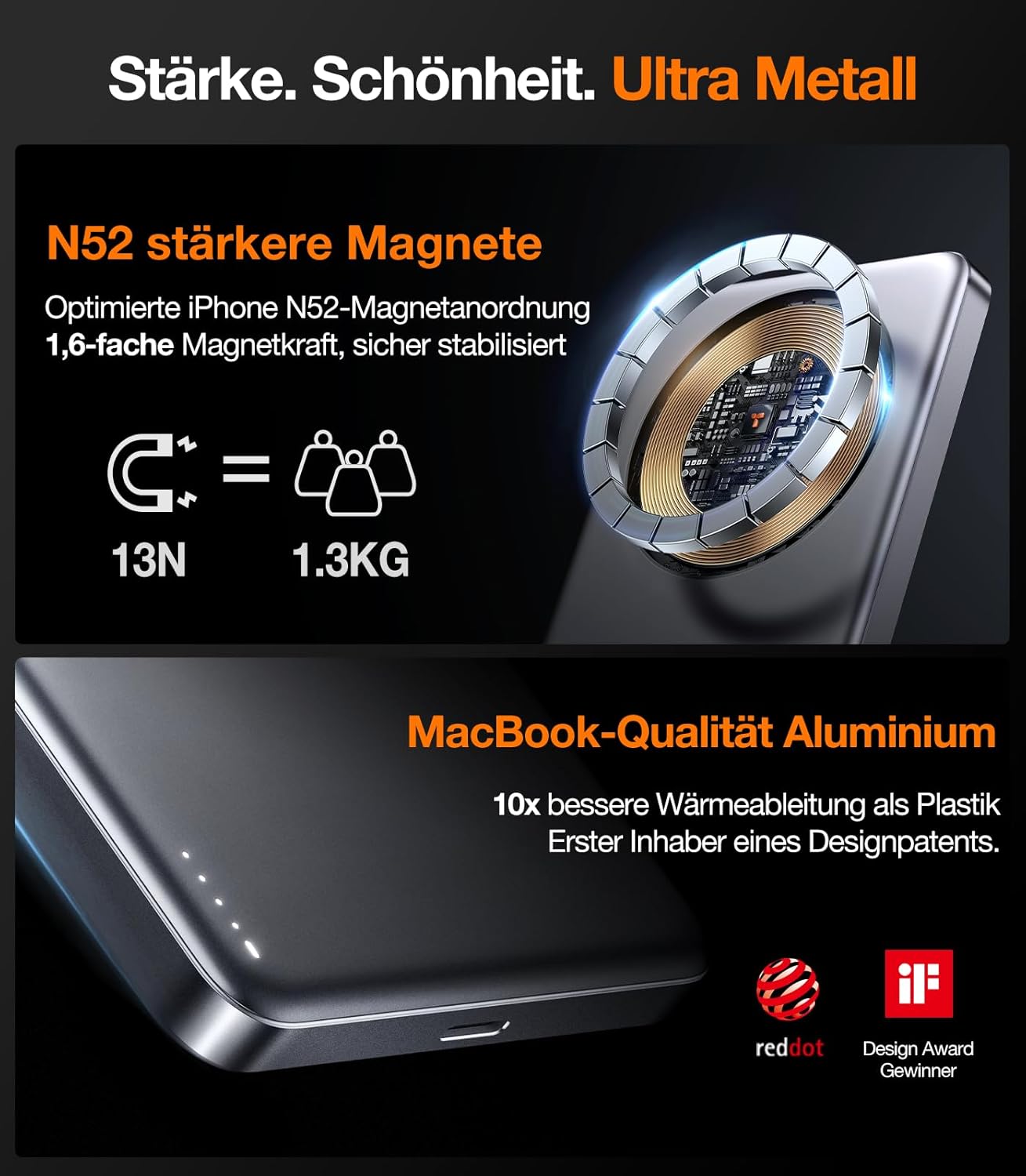 - [Für iPhone & Sorgenfreies Einkaufen] Der Powerbank ist speziell für iPhone-Modellen mit MagSafe - fähigen. Er ist vollständig kompatibel mit iPhone 15/14/13/12 Pro/Pro Max/Plus/Mini. Die Power bank wird mit einer einjährigen Produktgarantie