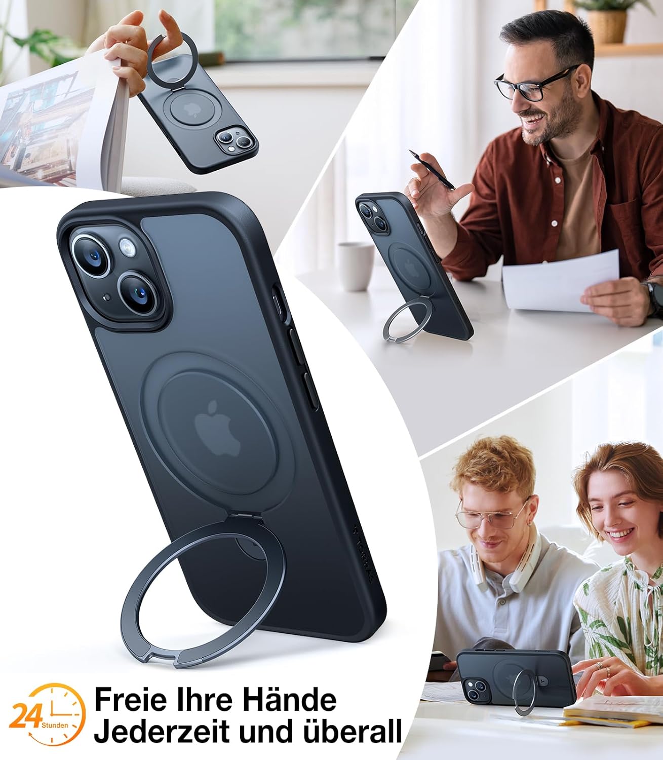 - [Ein praktischer Lebenshelfer-Robuste Ständer] Die iPhone 15 case ermöglicht es Ihnen, Ihre Hände freizugeben, um bequem TV-Sendungen anzusehen oder Videoanrufe zu tätigen. Sie besteht aus einer robustenAluminiumlegierung, die mehr als 30.000-mal
