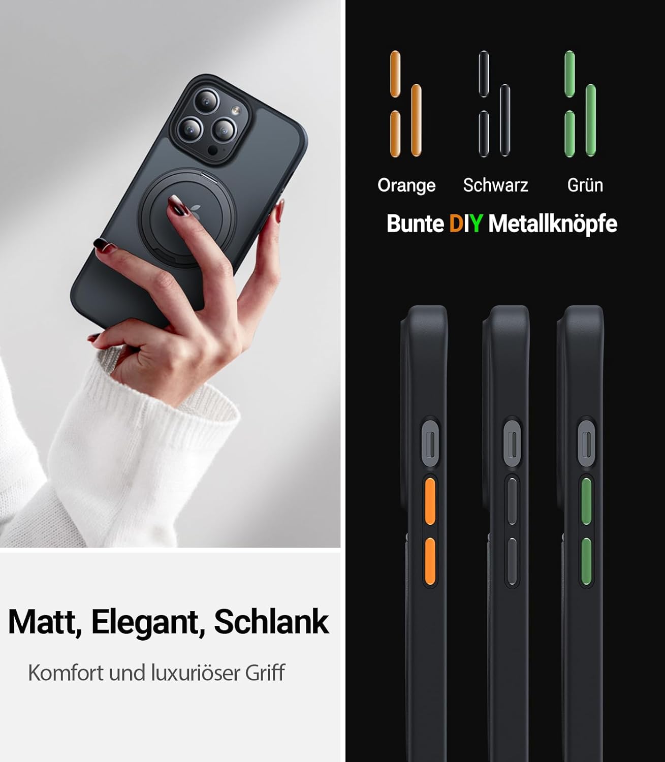 - 【Schlank, Stilvoll, Sicher】Das eingebaute Kickstand-Design sorgt für ein schlankes Profil. Die matte Oberfläche verleiht Ihrem iPhone 14 Pro Max nicht nur einen eleganten und stilvollen Look, sondern sorgt auch für eine einfache Reinigung ohne die