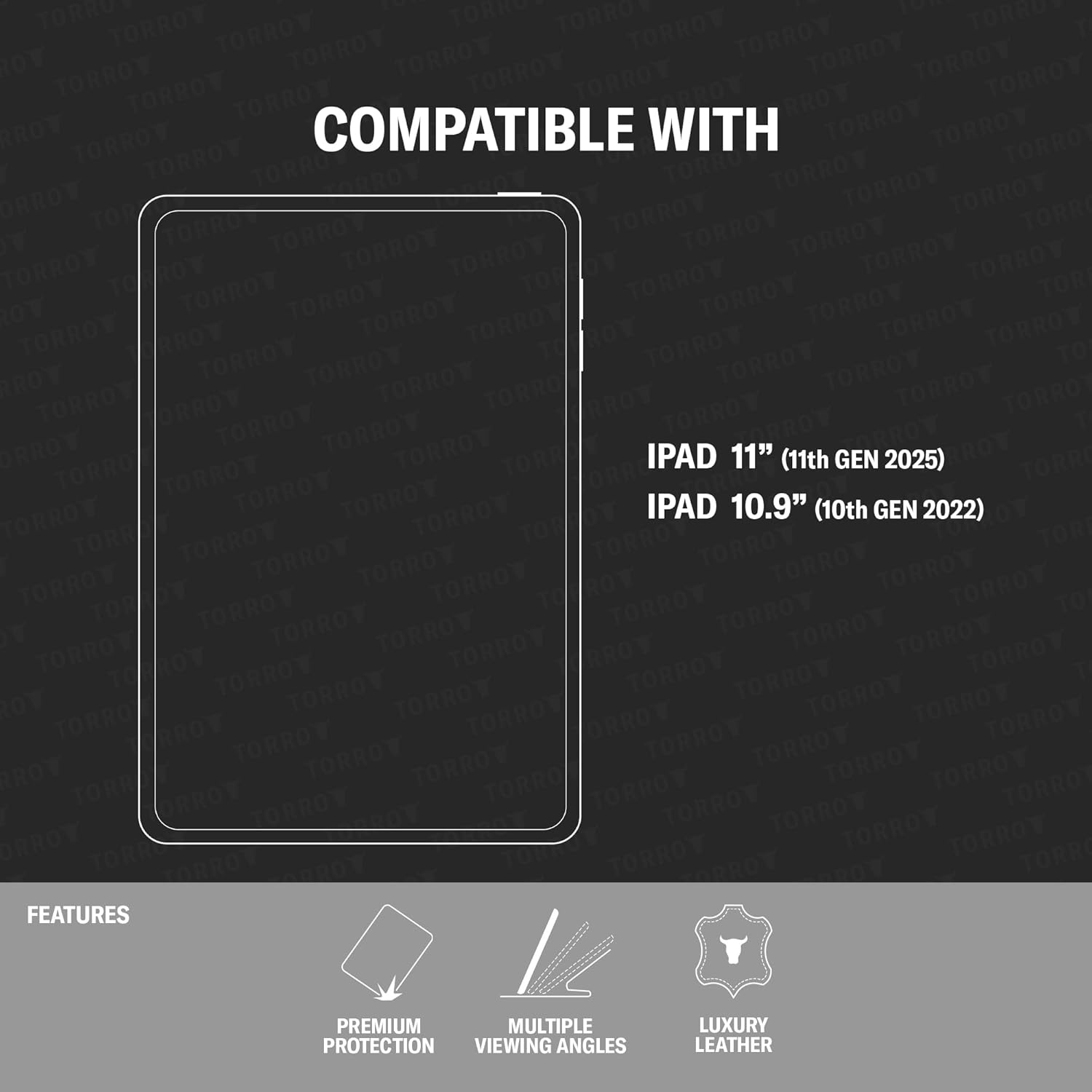 - KOMPATIBILITÄT - Die TORRO iPad Lederhülle wurde exklusiv entworfen und gefertigt für das iPad 10.9" 10. Generation (Ausgabe 2022). Die präzise Passform sorgt für einen uneingeschränkten Zugang zu Bildschirm, Kamera, Tasten und Ladeanschlüssen.