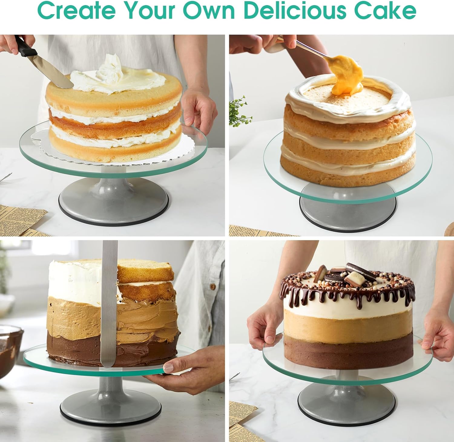 - 【Drehbare Kuchenplatte】 Dank der hochwertigen Edelstahllager lässt sich dieser Tortenständer reibungslos und ohne störende Geräusche um 360 Grad drehen