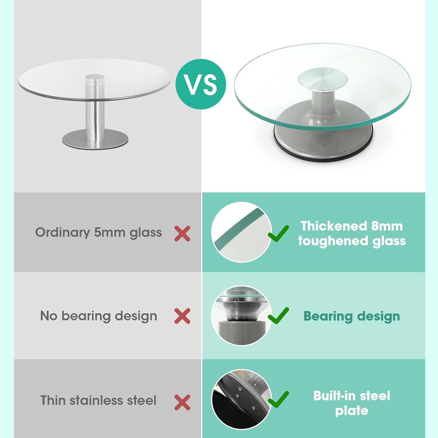 - 【Starke Hartglas】 Dies ist eine verbesserte Kuchenplatte. Im Vergleich zu herkömmlichen Kuchenformen aus Glas auf dem Markt verwendet unsere Kuchenform verdicktes gehärtetes Glas mit einer Dicke von 8 mm und einem Gewicht von 2,2 kg, sodass Sie