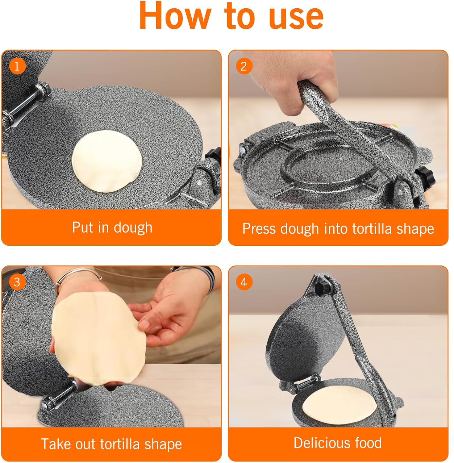 - MEHRZWECK: Mit seinem vielseitigen Design eignet sich unser Tortilla-Maker nicht nur für die Zubereitung von Tortillas, sondern auch für Kekse, Grillfleisch, Pasteten, Pastetchen und Pizza und deckt damit ein breites Spektrum kulinarischer Bedürfnisse