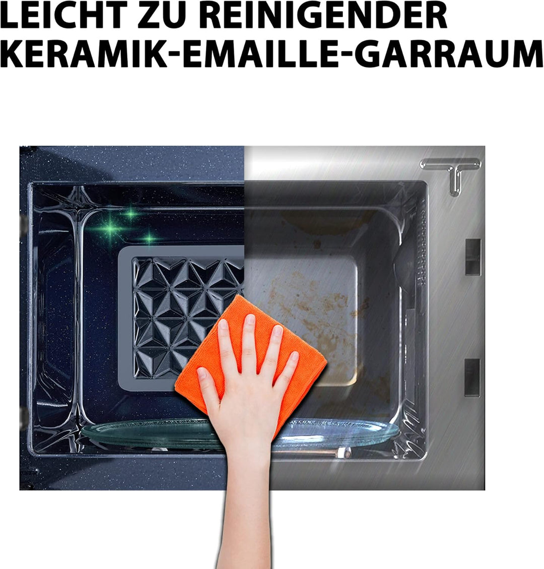 - 【Produktmerkmale】 800 Watt Mikrowellenleistung mit 5 Leistungsstufen, externe Abmessungen (B*T*H): 462*381*285mm, interne Abmessungen (B*T*H): 307*297*216mm, ⌀ 245mm Drehteller mit automatischer Positionierung/WEEE-Nr.: DE55703080