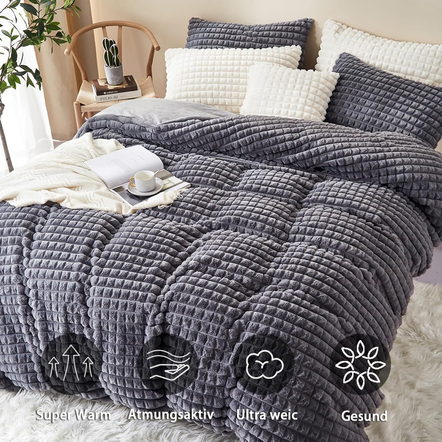 - Produktparameter: Bettbezug aus 300g/㎡Kaninchenfell auf der einen Seite und Kristall-Samt auf der anderen Seite. Der warme, flauschige und kuschelige Bettbezug ist chemiefrei, weich, atmungsaktiv, knitter- und lichtecht. Der Bettwäsche und Kissenbezug