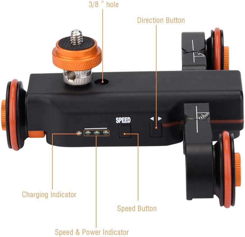- Die Vorderräder können in mehreren Winkeln eingestellt werden, um die Aufnahmewinkel für weitere Möglichkeiten, Nahaufnahmen und 360-Grad-Panoramaaufnahmen zu erweitern
