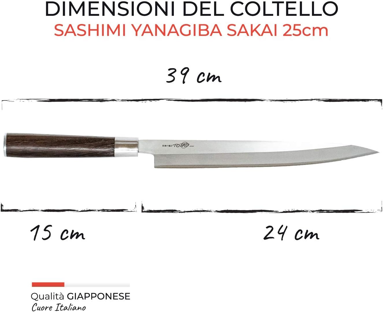 - YANAGIBA mit 24 cm Klinge zum Reinigen von Fisch und zum Zubereiten von Sushi und Sashimi.