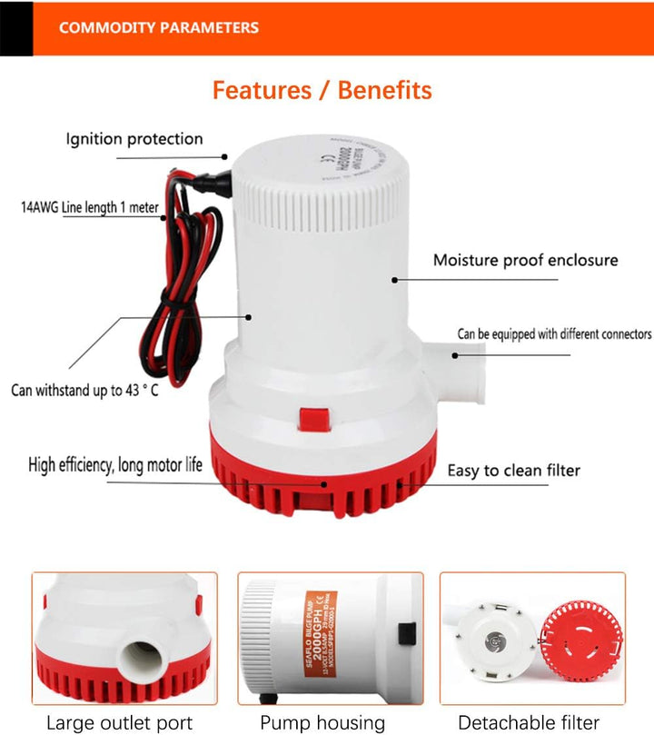 - Breite Anwendung: 1500 Gallonen pro Stunde tauchbarer Bilgenstoss, hilft Bilgenwasser auszuschliessen, ideal für Fischerboote, Kreuzer, Yachten usw.