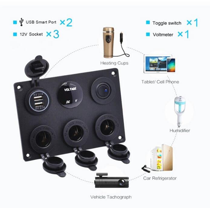 - 【Multiports】 Mit zwei USB-Buchsen und 3 12-V-Zigarettenanzünderbuchsen, kann frei ausgetauscht werden, kann auch jeden Port durch zusätzliche USB-Buchsen ersetzen oder was auch immer geeignet ist.