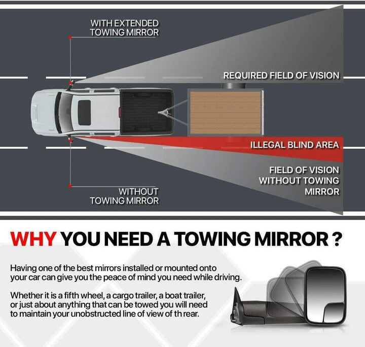 - 【Breite Anwendungen】 1 Packung. Diese Spiegelverlängerung ist so konzipiert, dass sie an die Spiegel der meisten grossen Fahrzeuge wie Anhänger, Jeeps, Lastwagen, Autos, F150, 250 usw. Seitenspiegelverlängerungen (universell für links und rechts)