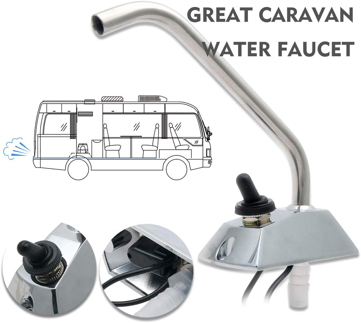 - Versorgungspumpe: Sie läuft mit 12 V Spannung, Gleichstrom-Wasserpumpe. 4,3/1,1 LPM/GPM, 35 PSI Druckschalter, max. 3,5 A, geringer Stromverbrauch, sodass mehr Strom für Ihre anderen Geräte übrig bleibt. Hervorragender Wasserdruck, sorgt für einen