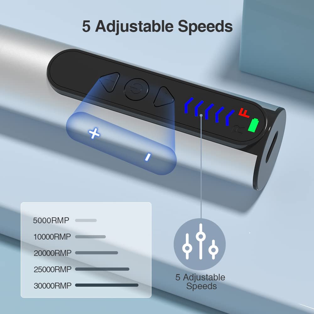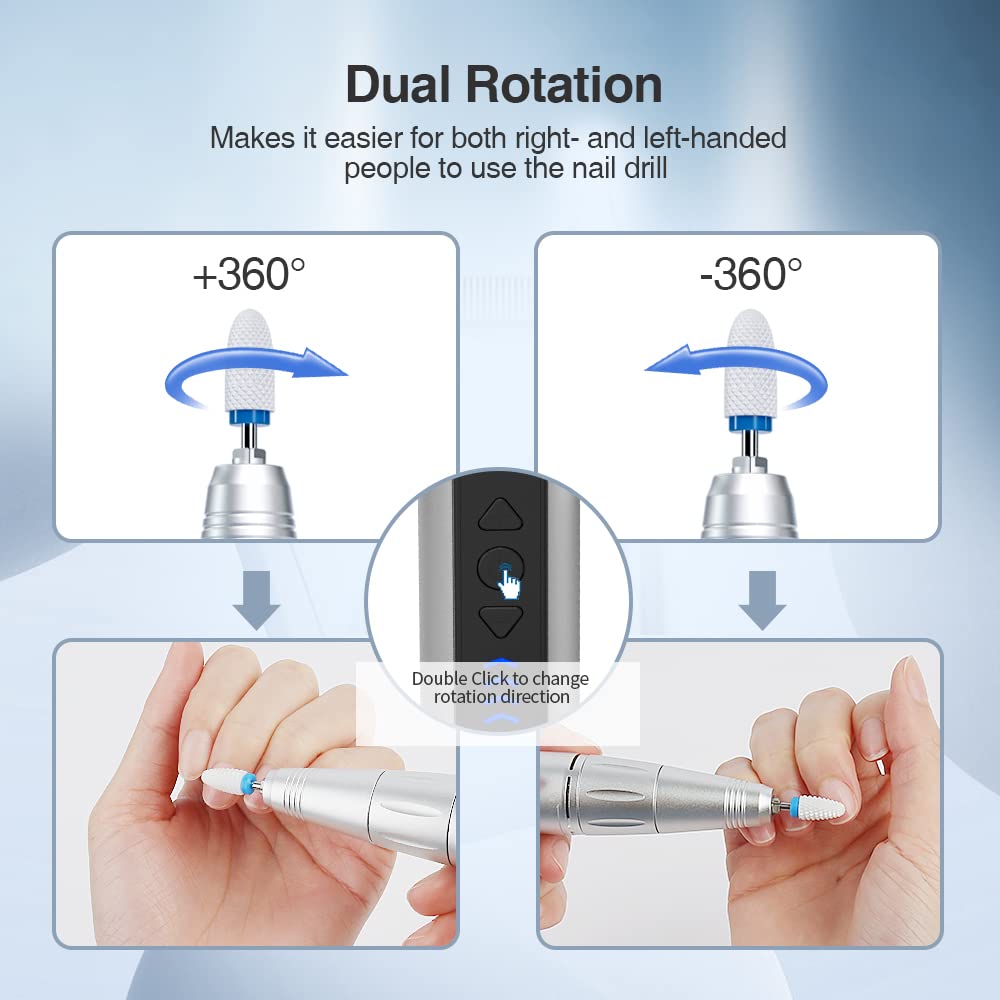 - 【Verbesserter Leistungsstarker Motor】Dieser elektrische Nagelbohrer ist mit einem leistungsstarken Drehmotor mit 30.000 U/min mit 5 einstellbaren Geschwindigkeiten ausgestattet. F/R Richtung ist für Rechts- oder Linkshänder geeignet.