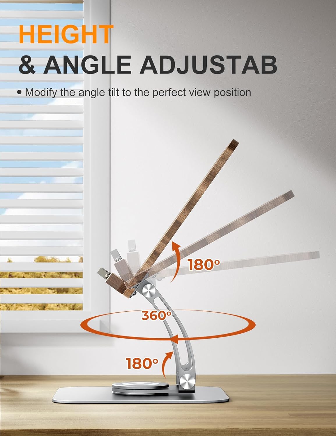 - 360°-Drehung: Dieser Buchständer bietet eine 360°-Drehfunktion, mit der Sie den Winkel Ihres Buches mühelos anpassen können. Teilen Sie Ihren Lesestoff mit anderen oder finden Sie problemlos die perfekte Betrachtungsposition. Die Möglichkeit der