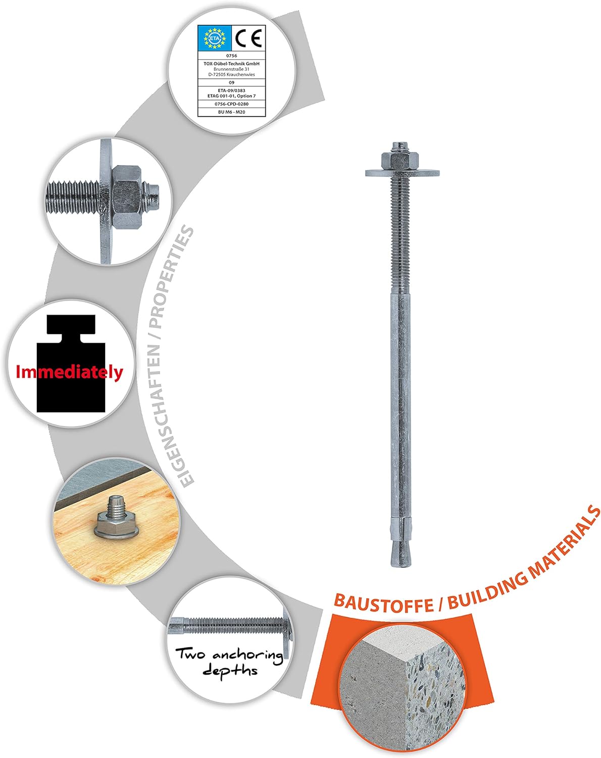 - Lieferumfang: 20x Bolzenanker Slim Fix M12x240/146+161 in der handlichen Kartonage, 08010134
