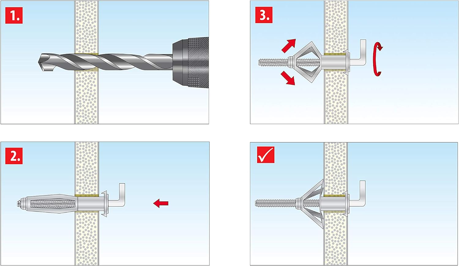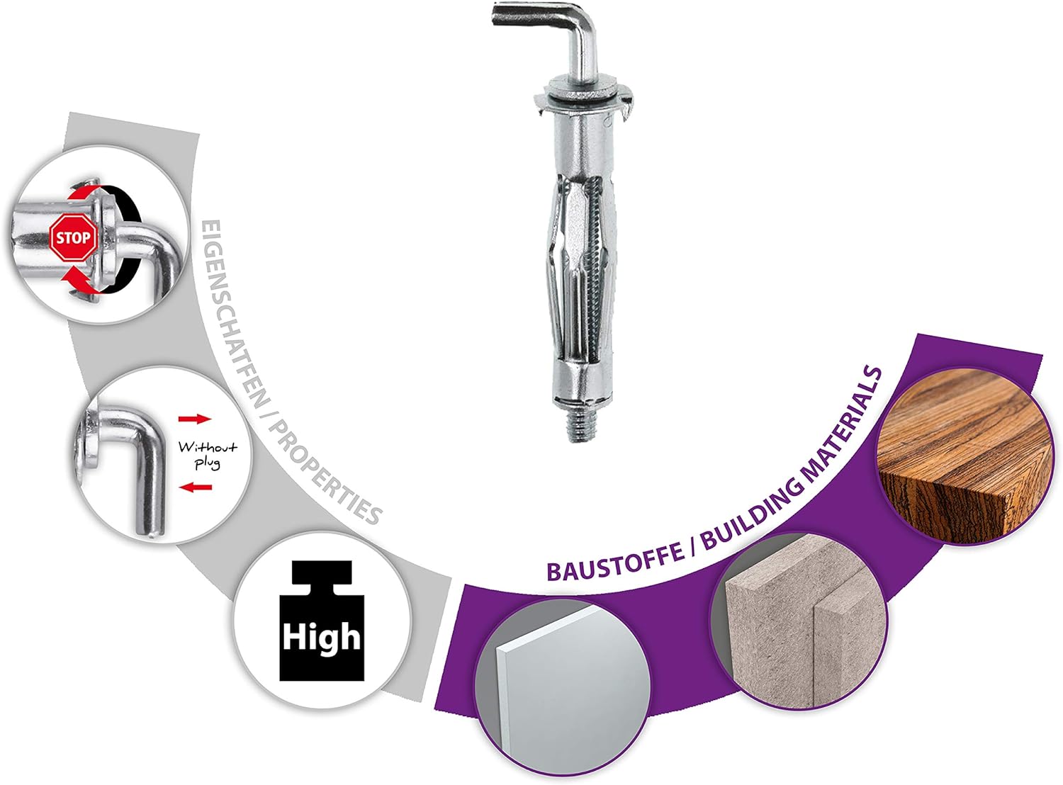 - Hakenschraube ist lös- und anziehbar ohne den Dübel zu entfernen