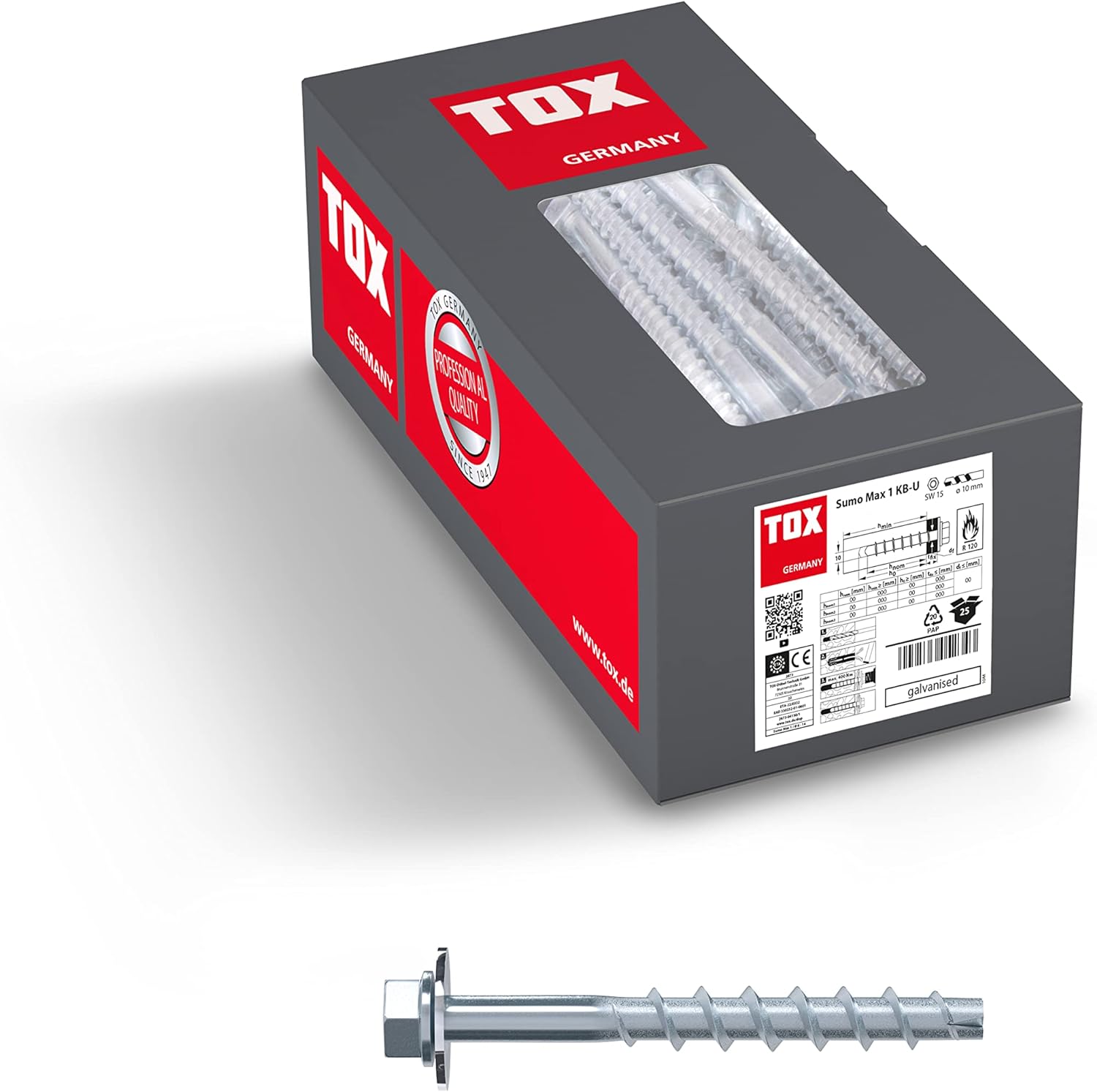 - Lieferumfang: 1x Kartonage Schraubanker Sumo Max 1 KB-U 10x280 mm, 25 Stück, 041101951