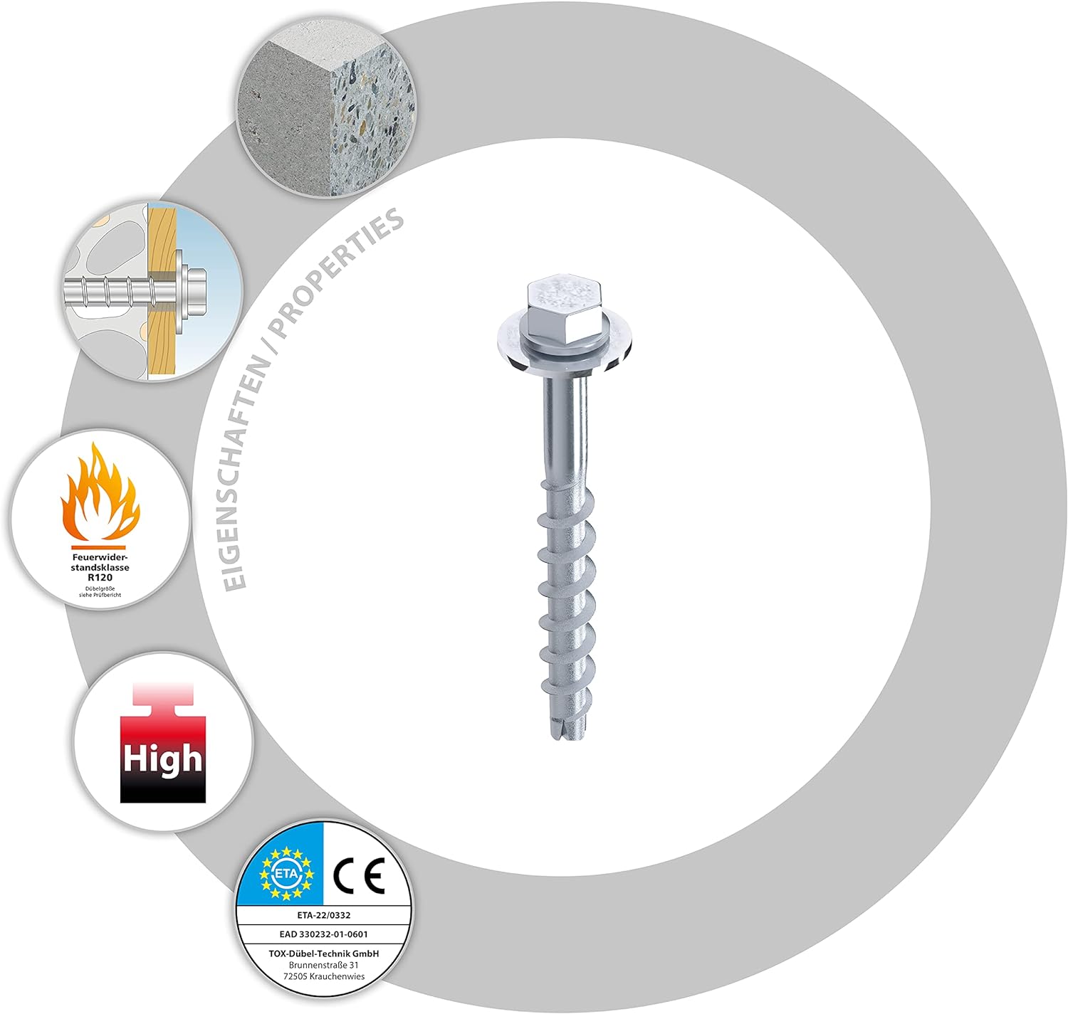 - Betonschraube für verschiedene Einschraubtiefen mit Zulassungen für verschiedene Klemmstärken