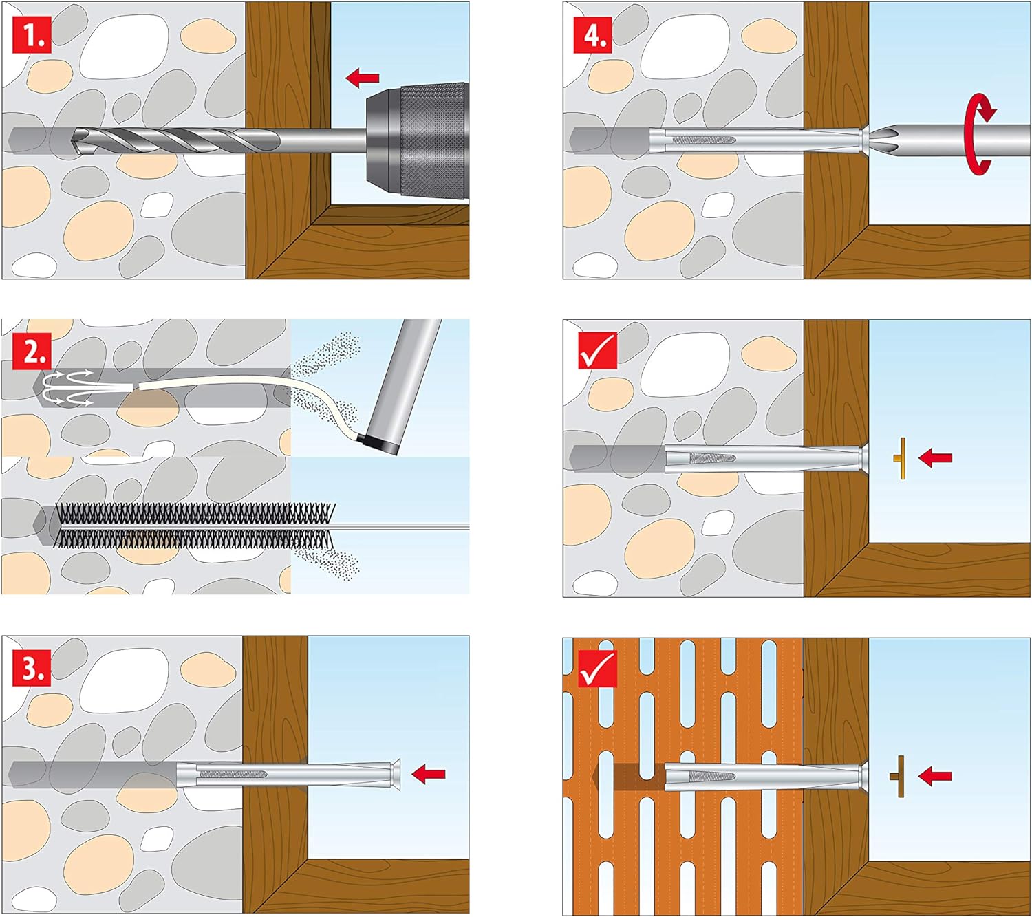 - Erzielen Sie eine zuverlässige und stabile Befestigung dank der zug- und druckfesten Fixierung des Fensterrahmendübels