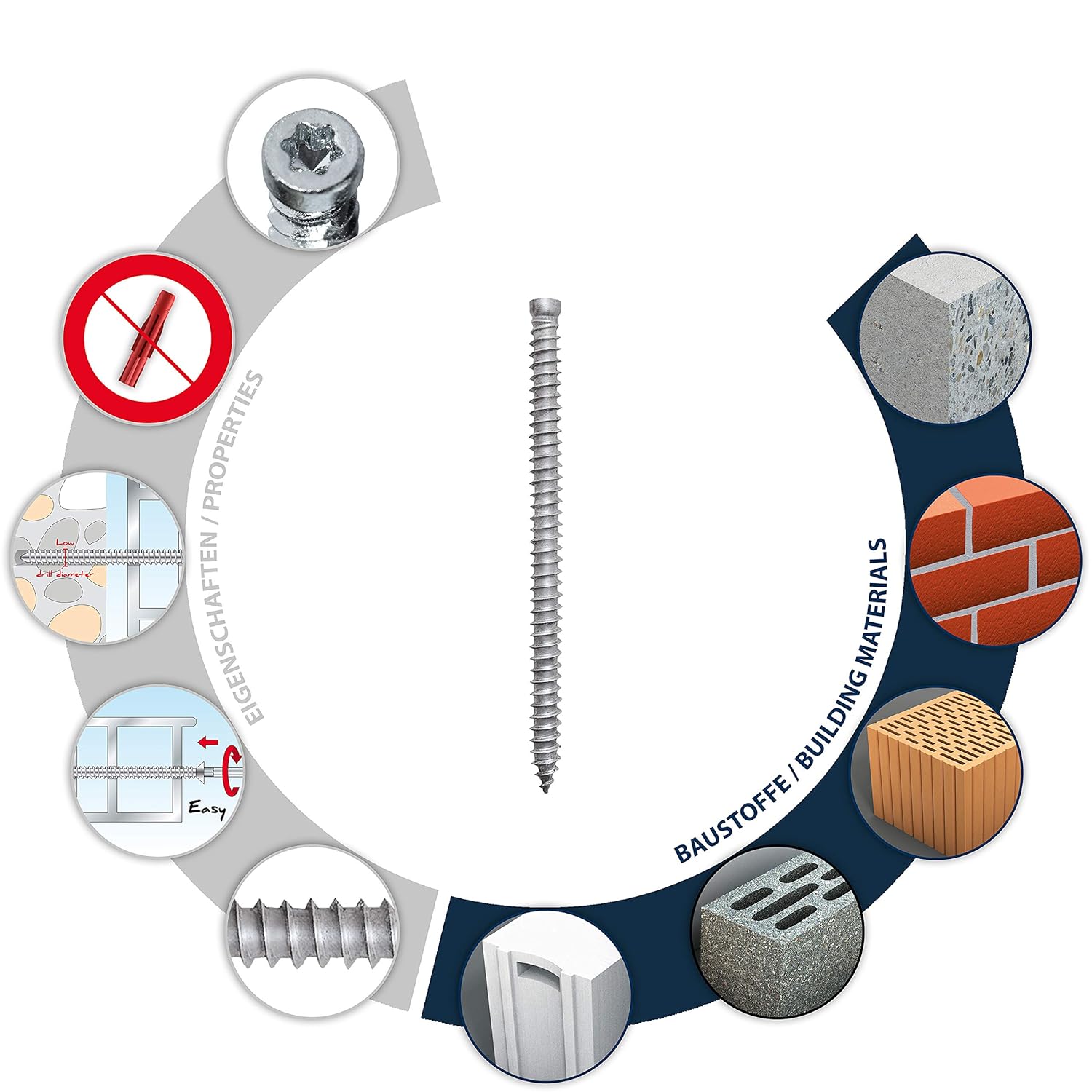 - Lieferumfang: 1x Karton Rahmenschrauben Ø7,5/212 mm mit Zylinderkopf und TX25-Antrieb, 100 Stück, 09310156