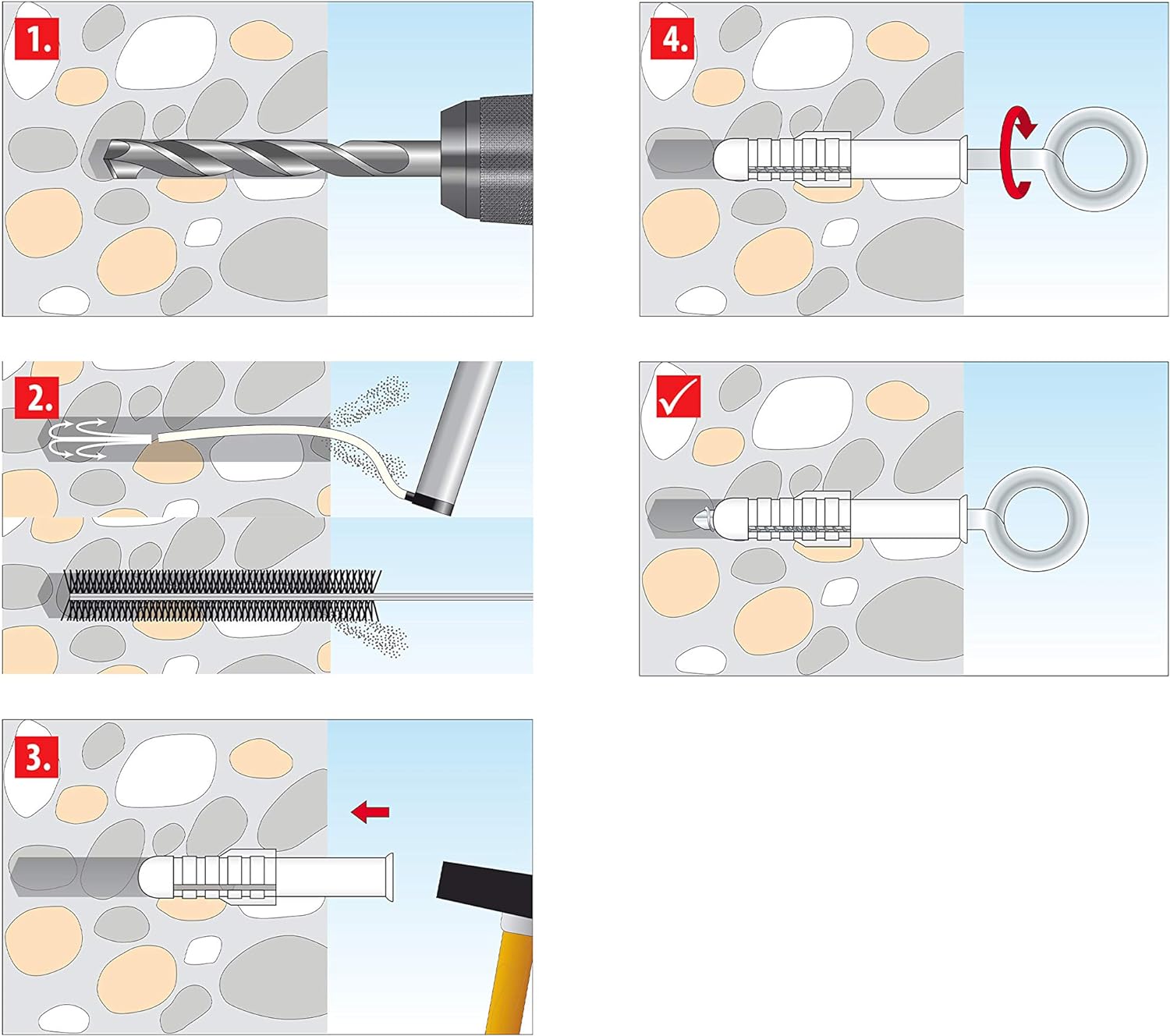 - Die Ösenschraube eignet sich mit dem Gerüstdübel Safe Fix für Befestigungen in Beton und Vollstein – so hält das Fassadengerüst sicher, aber auch weitere Projekte wie Rankgerüste, Ketten etc.