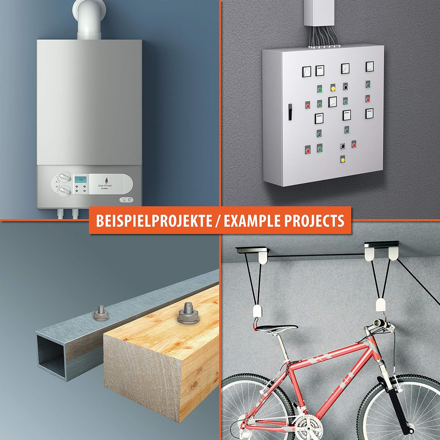 - Die mitgelieferte Sechskantschraube besitzt die Festigkeitsklasse 8.8 und die Unterlegscheibe ist grossflächig mit einem Ø von 24 mm für eine gute Kraftverteilung – der Schwerlast-Rahmendübel eignet sich zur Durchsteckmontage