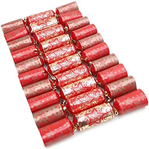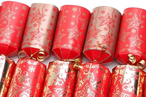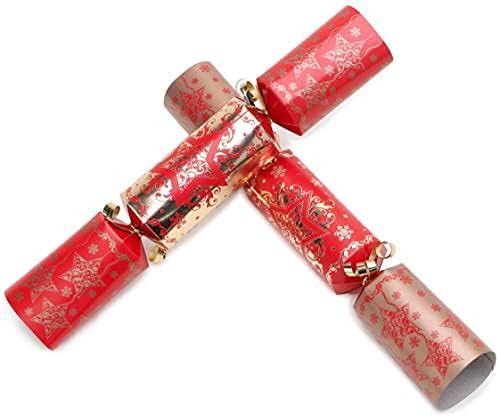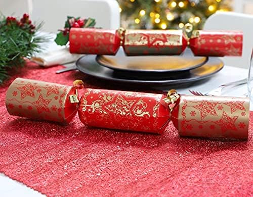 - Die Gastgeschenke sind eine Mischung aus Gold und Rot mit weihnachtlichem Muster.