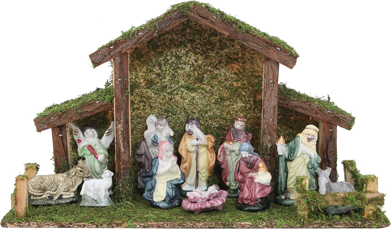 Toyland® Weihnachtskrippe Traditionell Krippenstall mit 11 Krippenfiguren Weihnachtsdeko Weihnachtsd