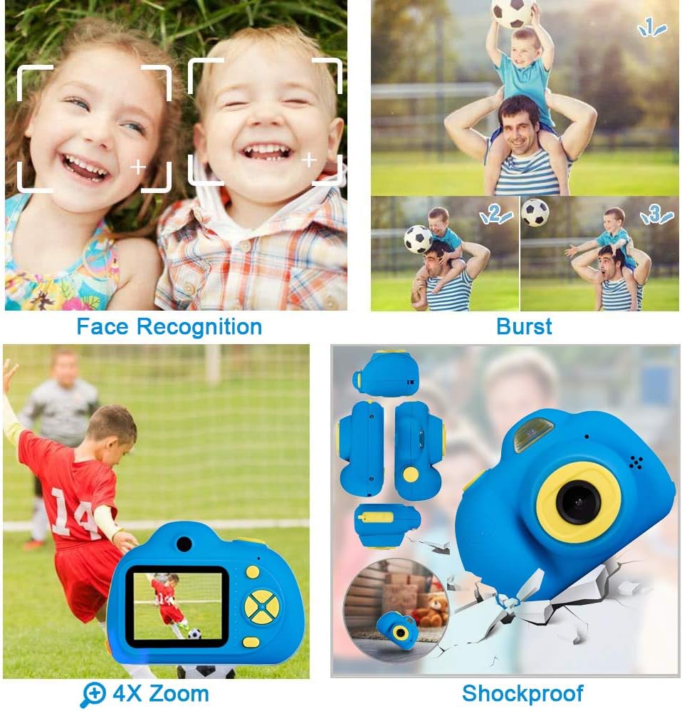 - Diese Kinderkamera bietet eine Auflösung von 18 Megapixeln und einen 4-fachen Zoom, mit dem Sie scharfe, lebensgrosse Fotos aufnehmen können. Die Zwei-Linsen- und Zeitrafferfunktion kann für Selfies oder Gruppenfotos verwendet werden. 6 eingebaute