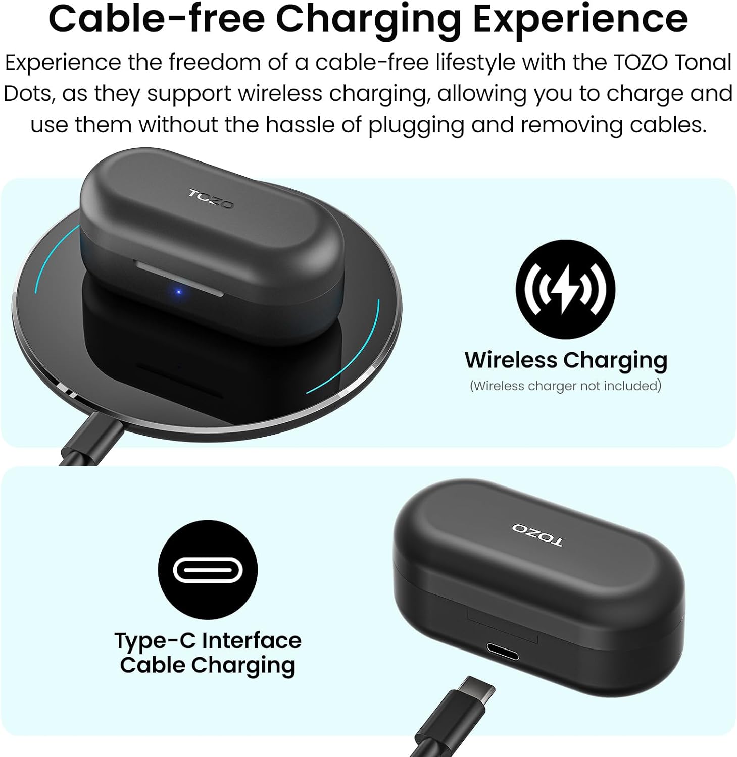 - [55 Stdn. Akkulaufzeit & LED-Digitalanzeige] Mit der integrierten LED-Anzeige der TOZO Tonal Dots können Sie mühelos die Akkukapazität und den Ladestatus überwachen. Geniessen Sie stundenlang ununterbrochenen Musikgenuss mit einer unglaublichen