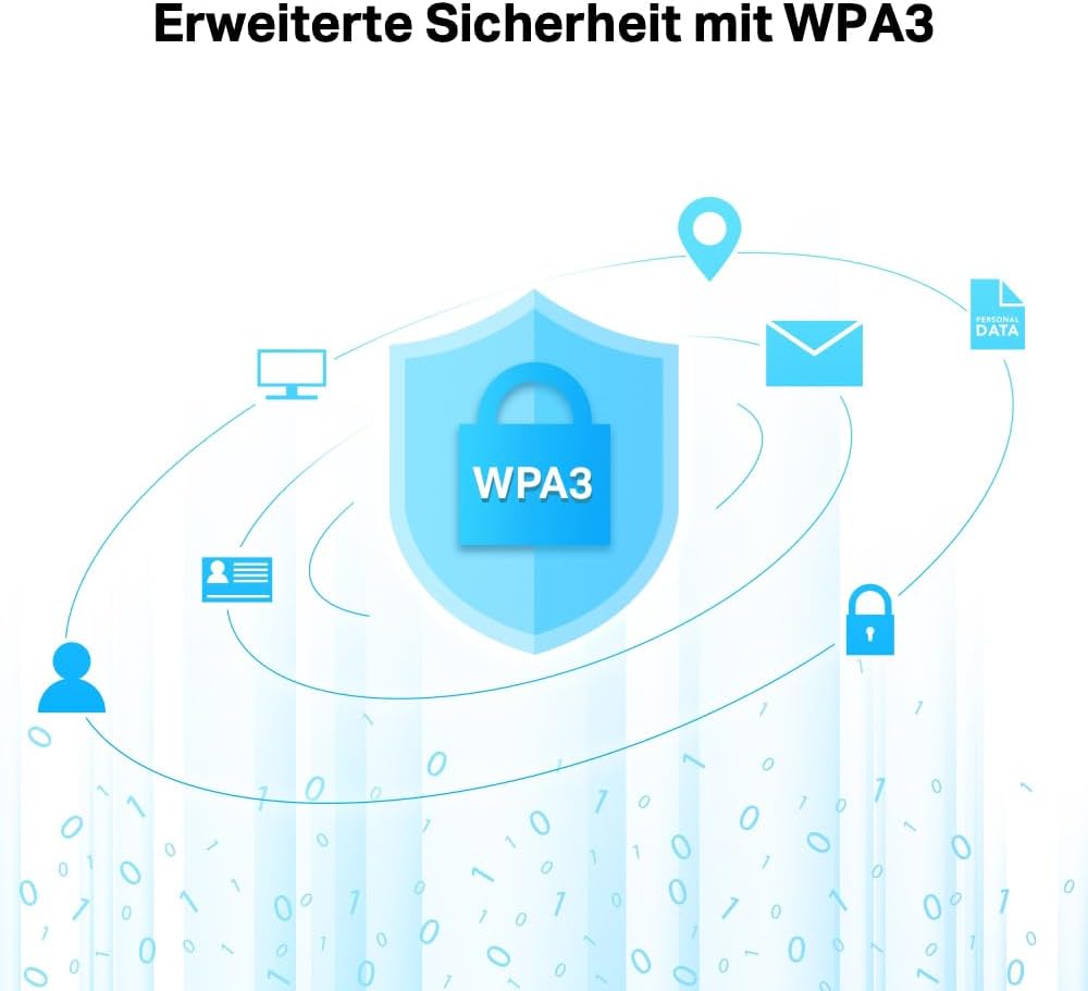 - Erweiterte Sicherheit mit WPA3 – stärkere Verschlüsselung in der WLAN-Passwortsicherheit und verbesserter Schutz vor Brute-Force-Angriffen schützen Ihr Heim-WLAN