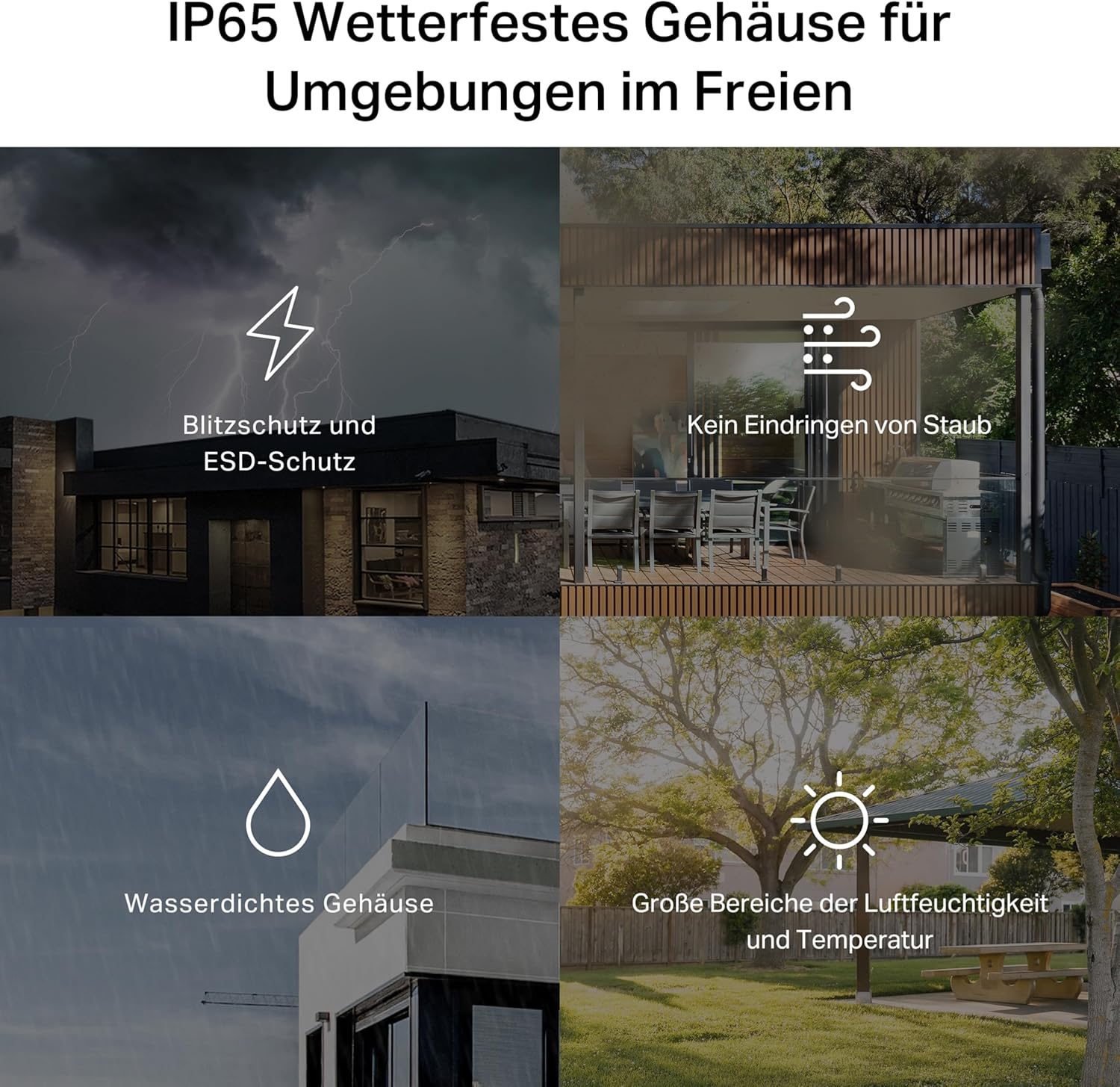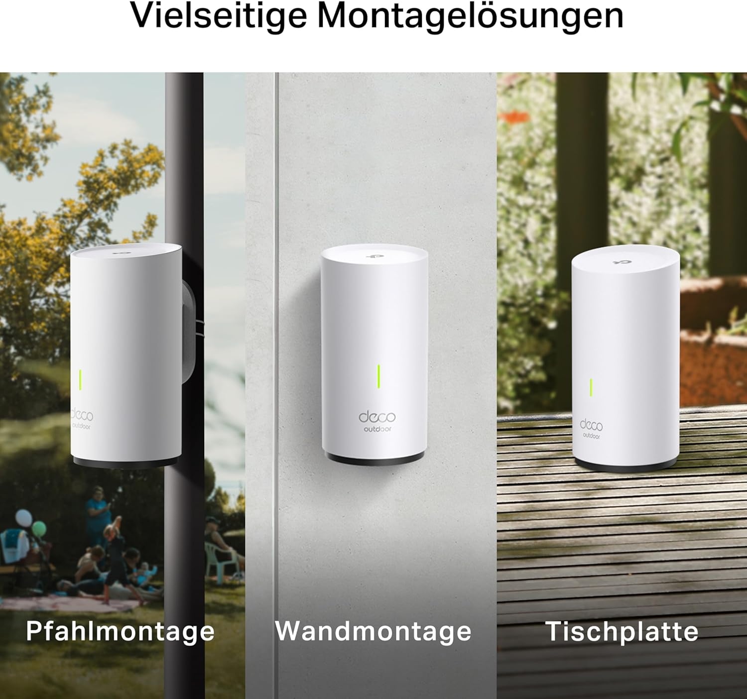- Arbeiten im Freien – Branchenführende Staub- und Wasserbeständigkeit nach IP65, ideal für den Einsatz im Freien.Sie können Deco X50-Outdoor verwenden, um Ihren Garten und Ihr Schwimmbad mit WLAN zu versorgen