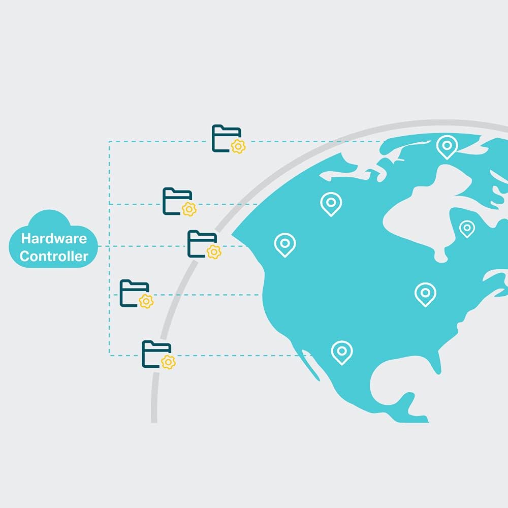 - Zentralisiertes Management für bis zu 500 Omada-Accesspoints, Omada-JetStream Switches und Omada-SafeStream Router bzw. Omada-Gateways.