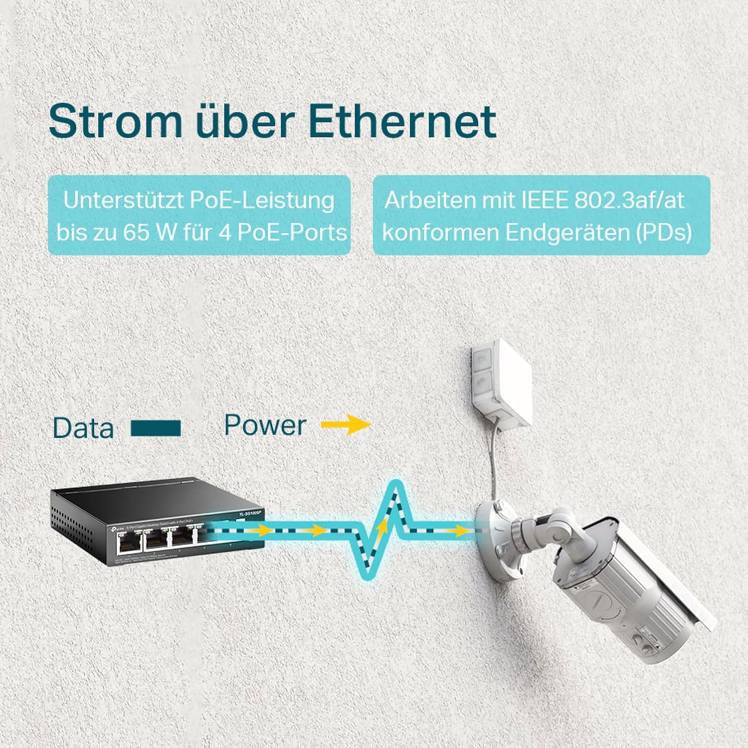 - Erweitern Sie Ihr Netzwerk: 5 Gigabit-RJ45-LAN-Ports, 4 PoE+-Ports