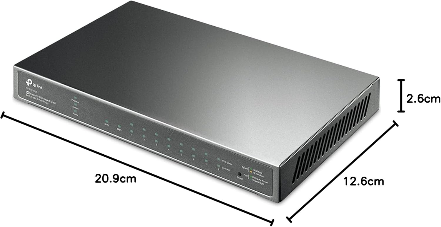 - 8× Gigabit PoE+ Ports und 2× Gigabit SFP Slots für Hochgeschwindigkeitsübertragungen
