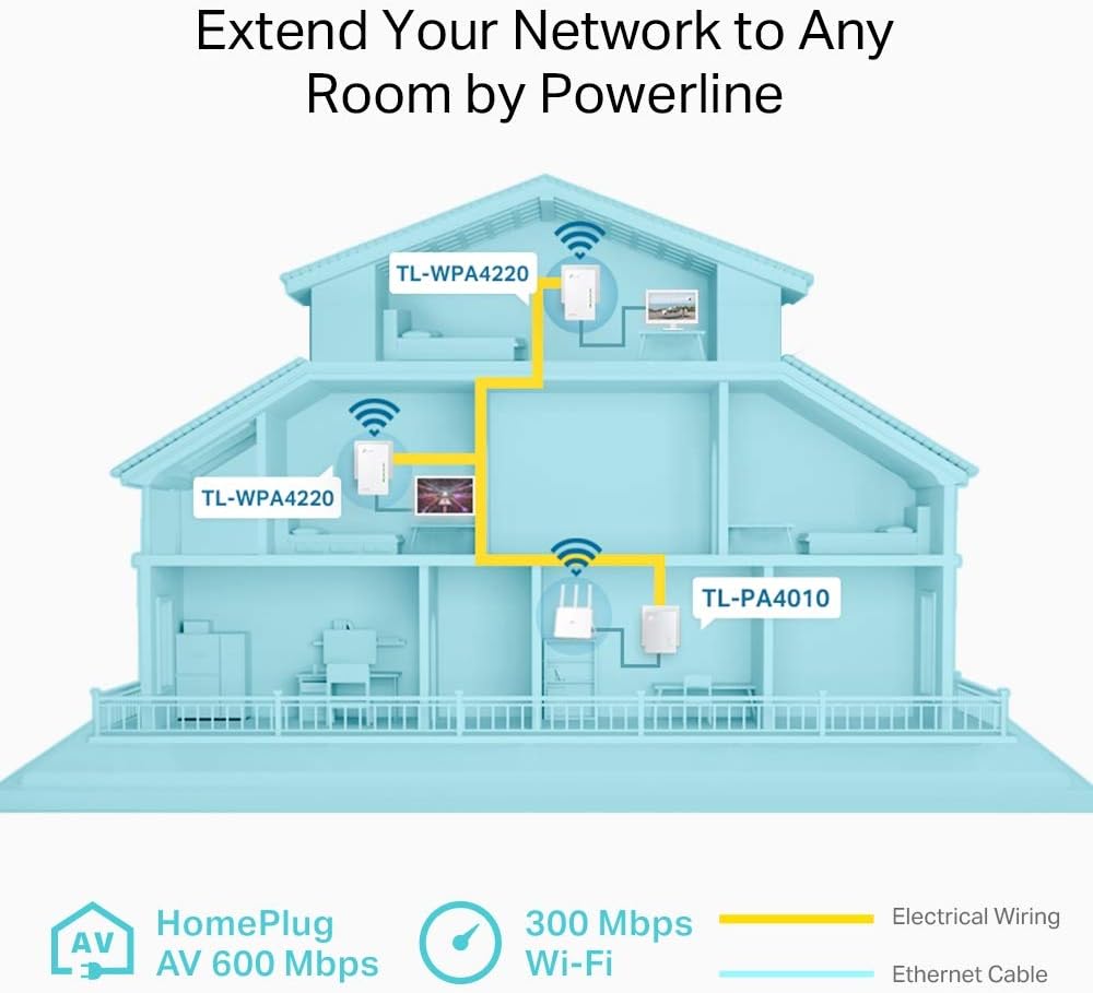 - Verpackungsinhalt: 2 x Powerline-Adapter TL-WPA4220, 1 x Powerline-Adapter TL-PA4010, 3 x RJ45-Ethernetkabel, Schnellinstallationsanleitung