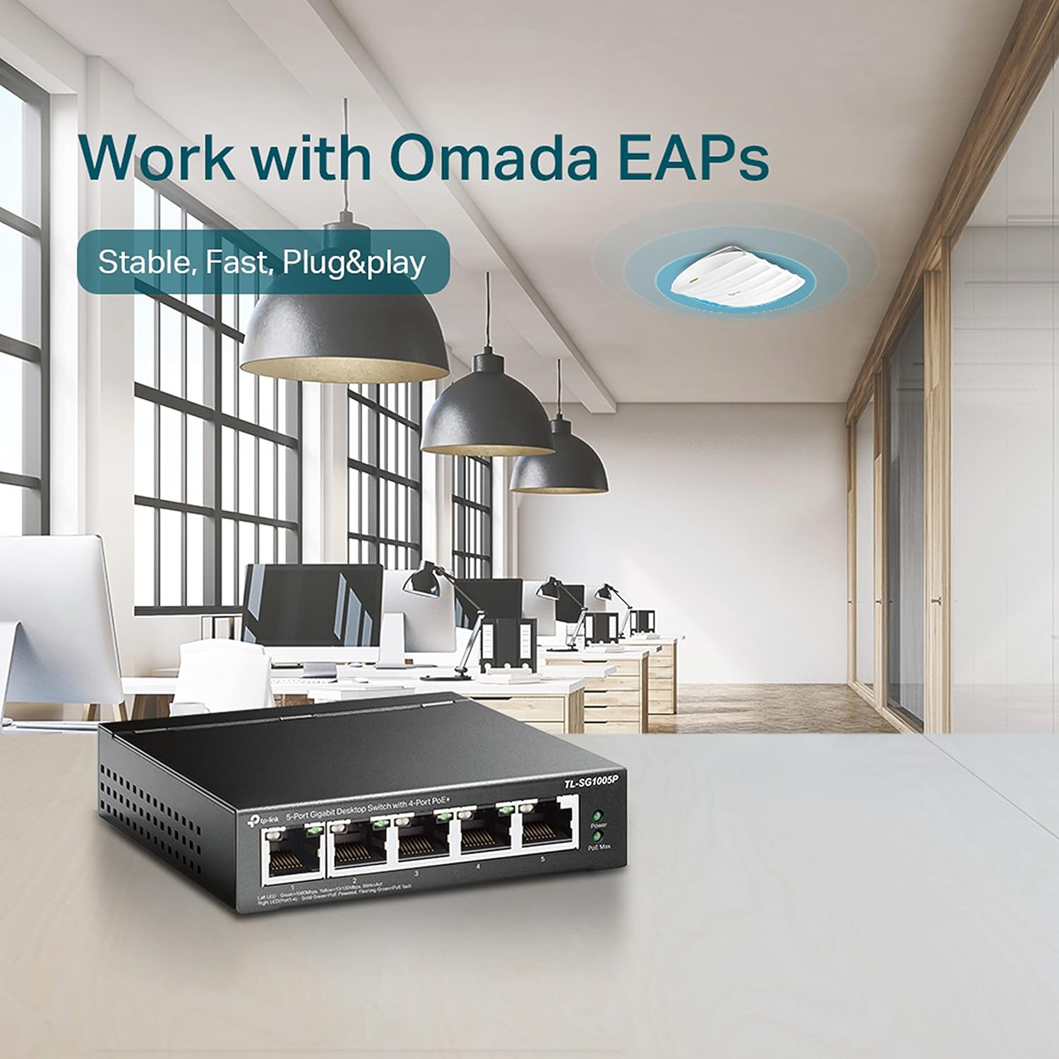 - 4x PoE+ Ports, Daten- und Stromübertragung einfach über ein einziges Kabel