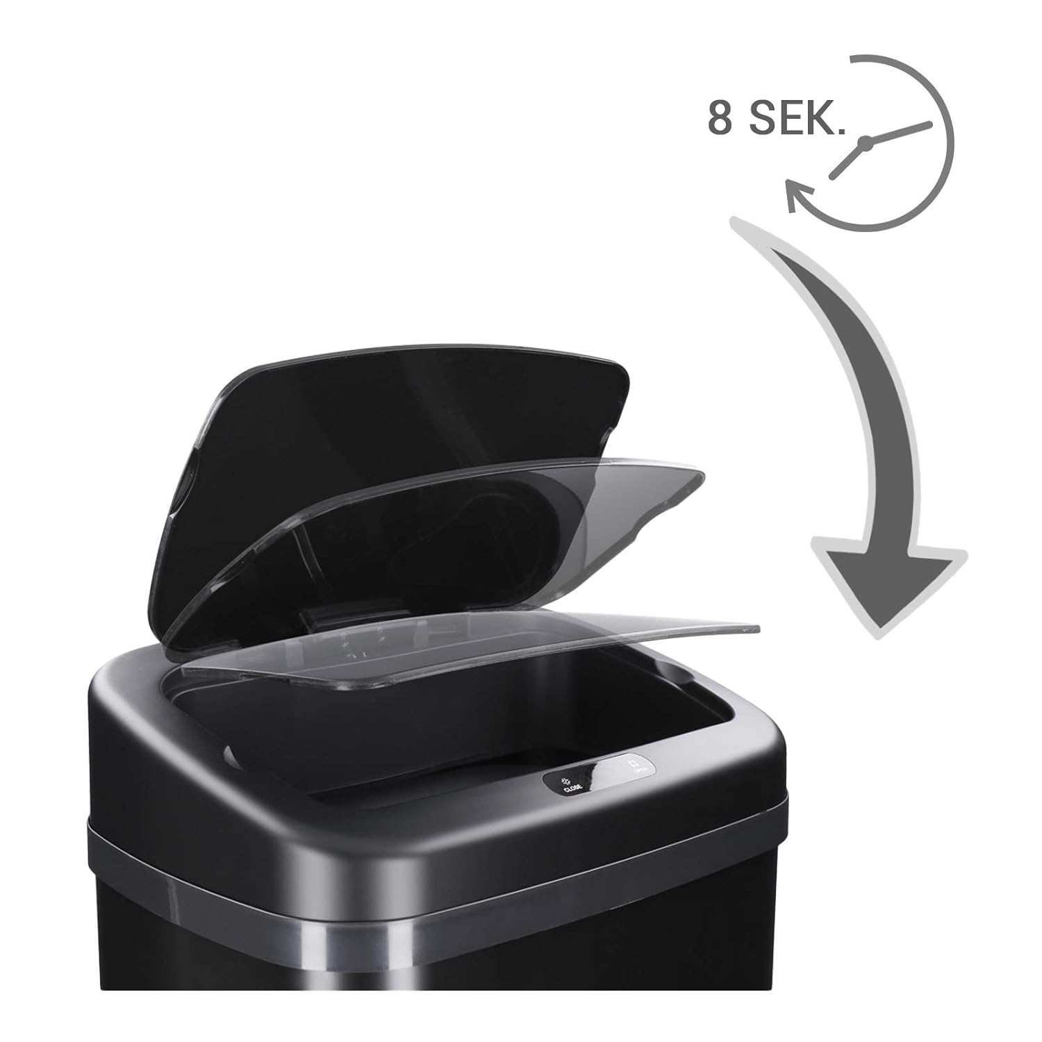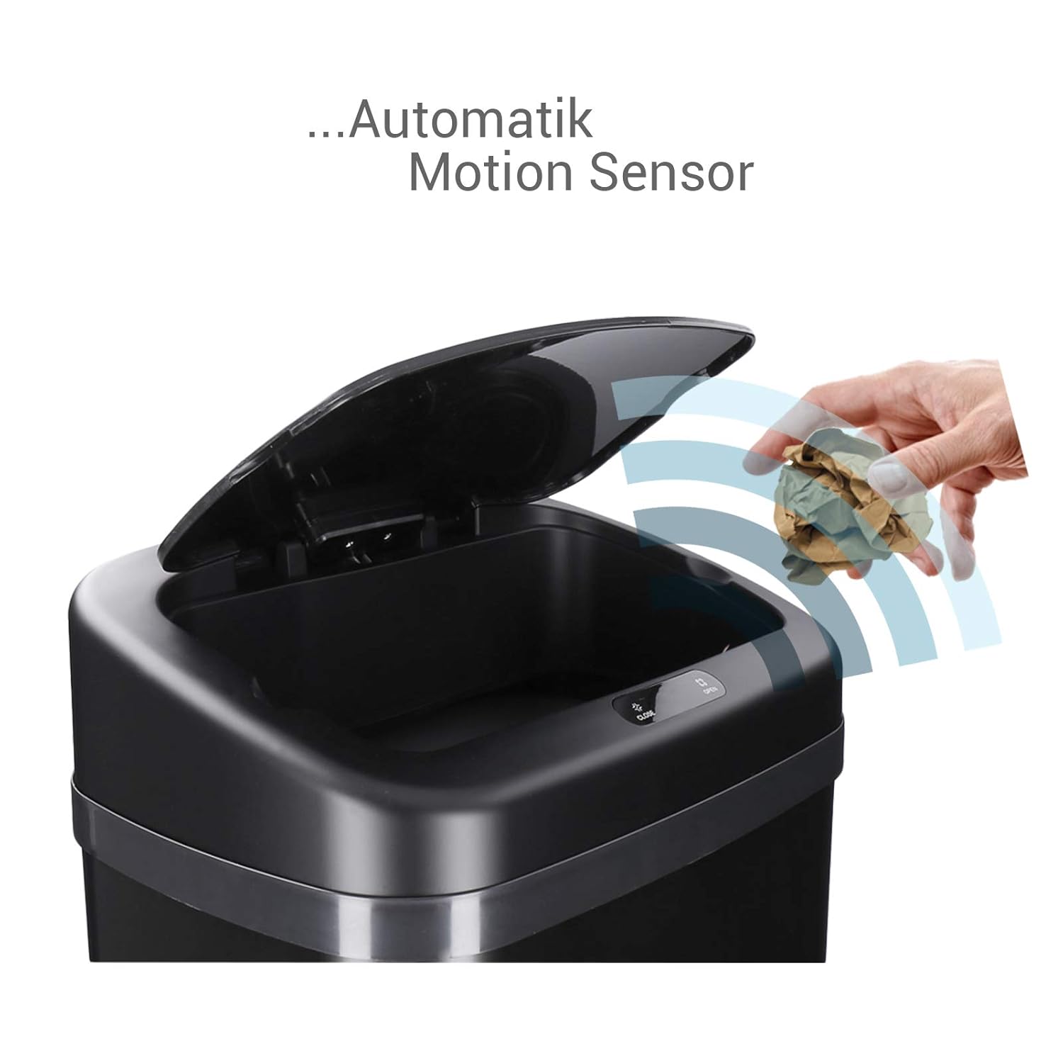 - Deckel öffnet und schliesst automatisch bei Bewegung in Sensor Reichweite nach 5 Sekunden, zusätzlich mit Touch-Funktion zur manuellen Bedienung