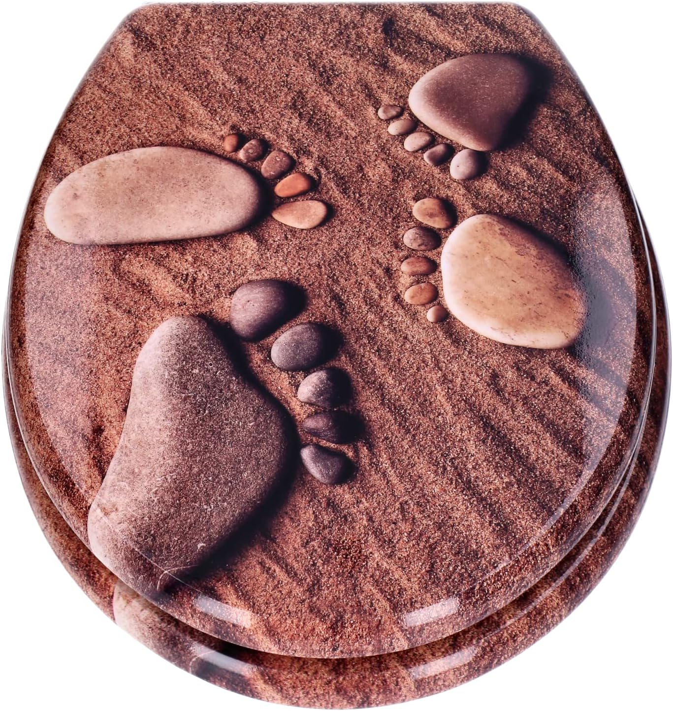 - Mit robustem Holz-Kern aus stabilem MDF, 3-seitiges Dekor: Grafik oben auf dem Deckel, auf der Innenseite und auf der Sitzfläche der Brille, antibakteriell, wasserabweisend, leicht zu reinigen, bruch- und abriebfest