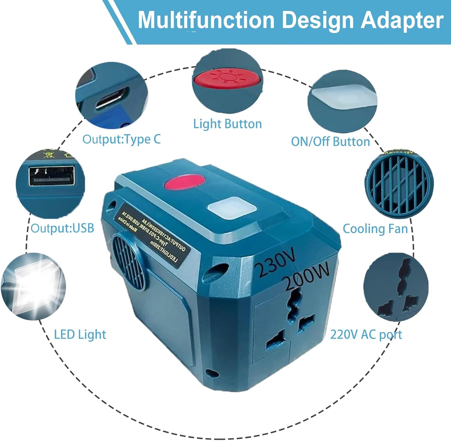 - ⚡【Superior Safety】Updated 200W Battery Inverter für Bosch akku Eingebaute Sicherung zum Schutz Ihres Geräts und umfassendes Multiprotect Sicherheitssystem umfasst Überladeschutz, Kurzschlussschutz, Temperaturkontrolle, Unterspannungsladung,
