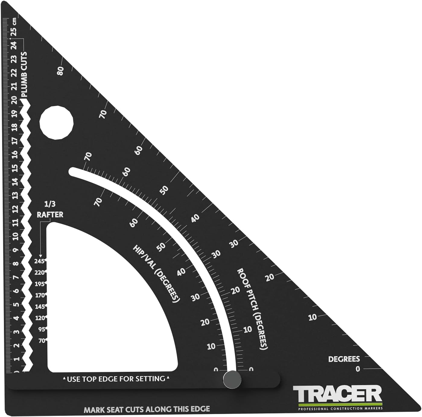 - LASERGEÄTZTE MARKIERUNGEN - Der TRACER ProSquare verfügt über leicht ablesbare Winkel, Schräg, Grat und Kehlmarkierungen. Alle Markierungen werden mit einem Laser geätzt, damit sie nicht mit der Zeit verblassen