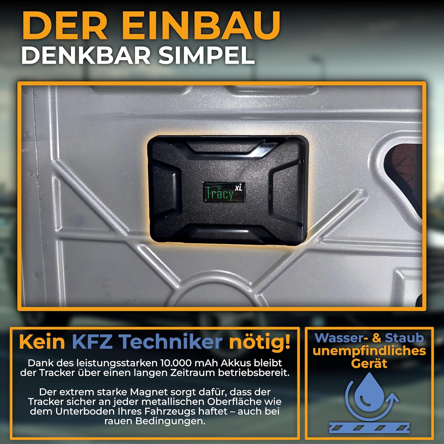 - Robuster und kompakter GPS Tracker mit leistungsstarkem Akku 10000 mA und starkem Magneten zur sicheren Anbringung an Fahrzeugen , Trailern etc. am Unterblech. Spritzwassergeschützt, Staub und Feuchtigkeit unempfindlich. Alles schon dabei: SIM-Karte mit