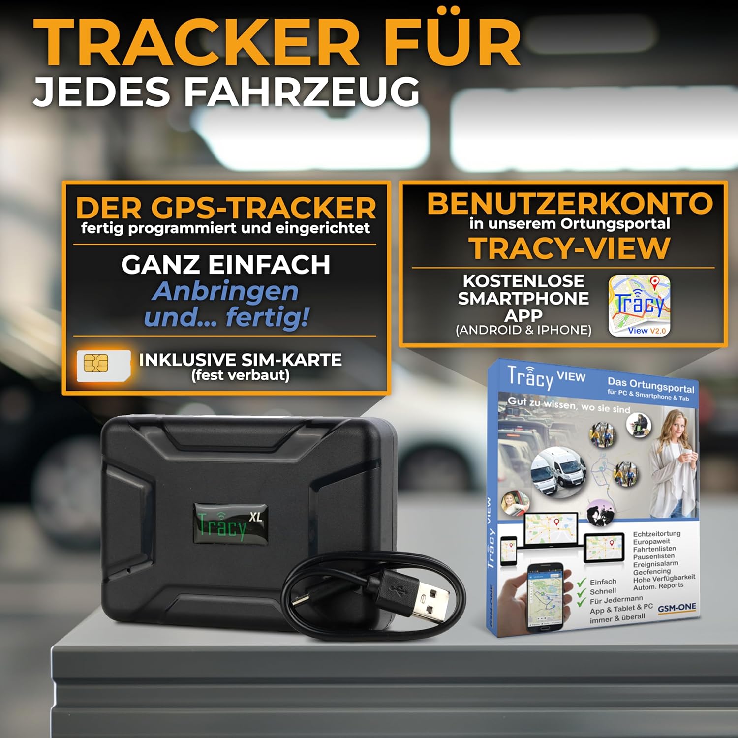 - Das Gerät kommt bereits komplett vorab eingerichtet zu Ihnen und ist sofort einsatzfähig. Lediglich einmal eine Email zur Registrierung schicken und Sie haben sofort Zugriff auf das Ortungsportal und die App Tracy-View. Das Gerät erfüllt die Auflagen