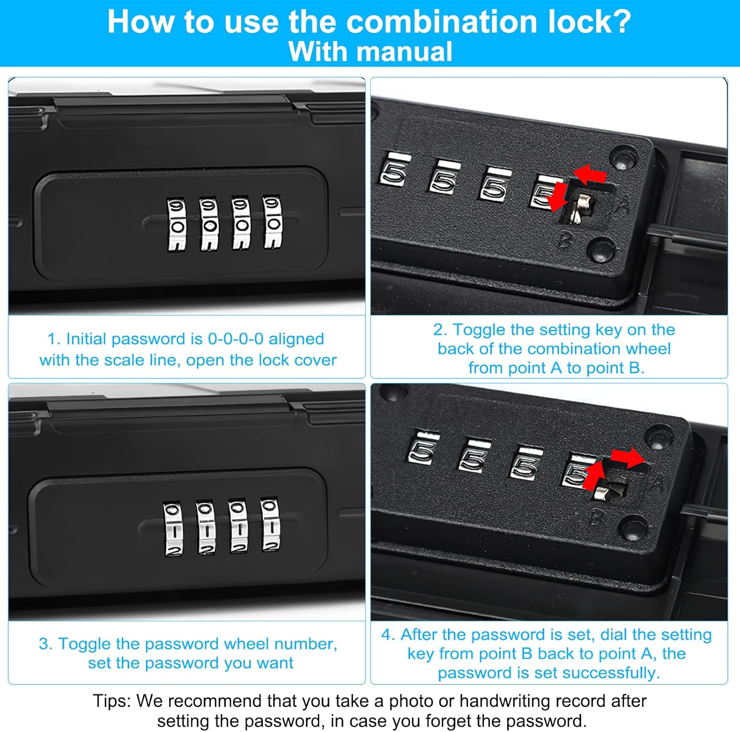 - SICHERES 4-ZIFFERN-PASSWORT-SCHLOSS: Der rücksetzbare 4-stellige Mini-TransportSchliessfächer bietet bis zu 10.000 Passwortkombinationen, die leicht zu merken und zurückzusetzen sind, um maximale Sicherheit zu gewährleisten. Das anfängliche Passwort