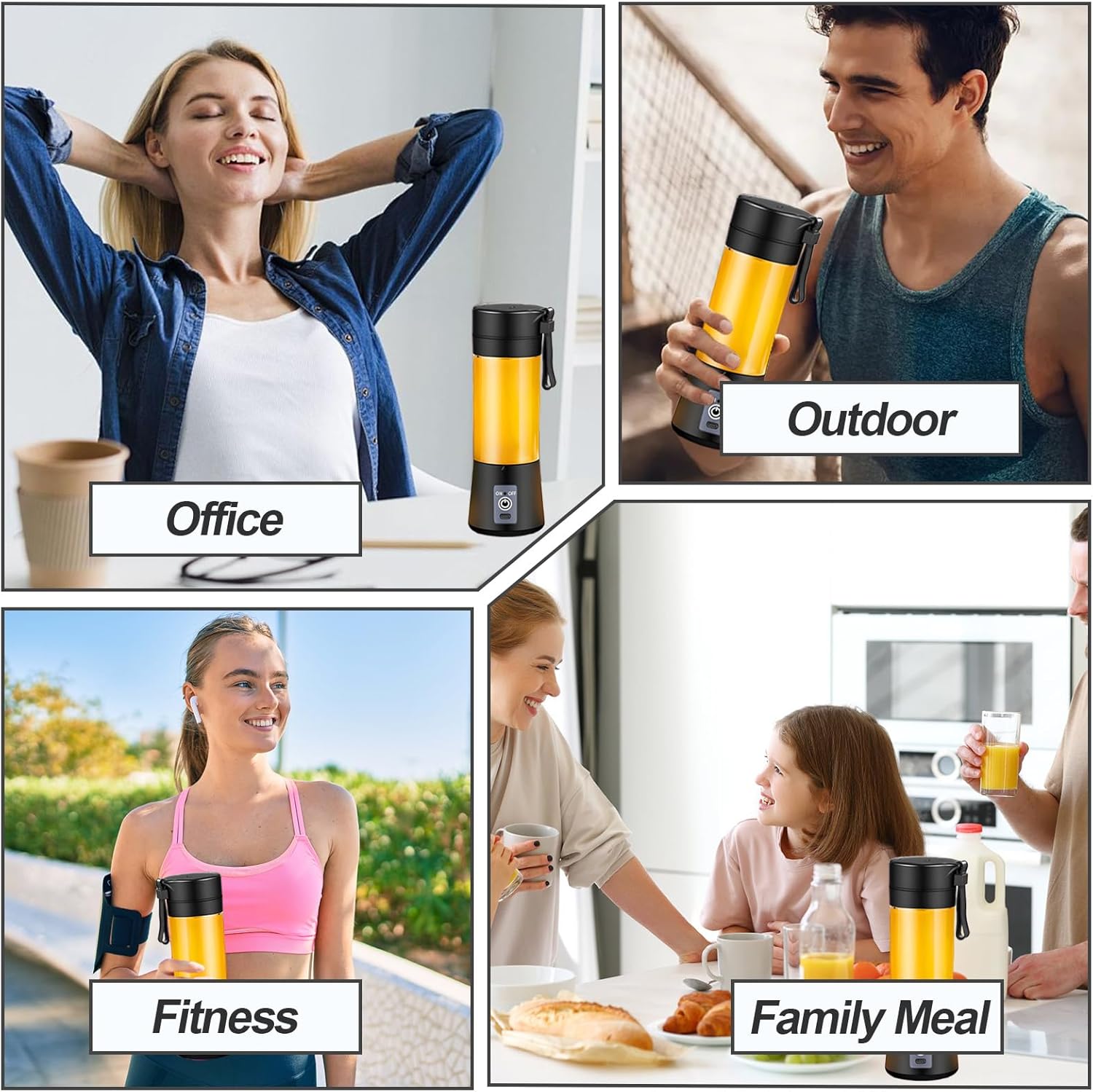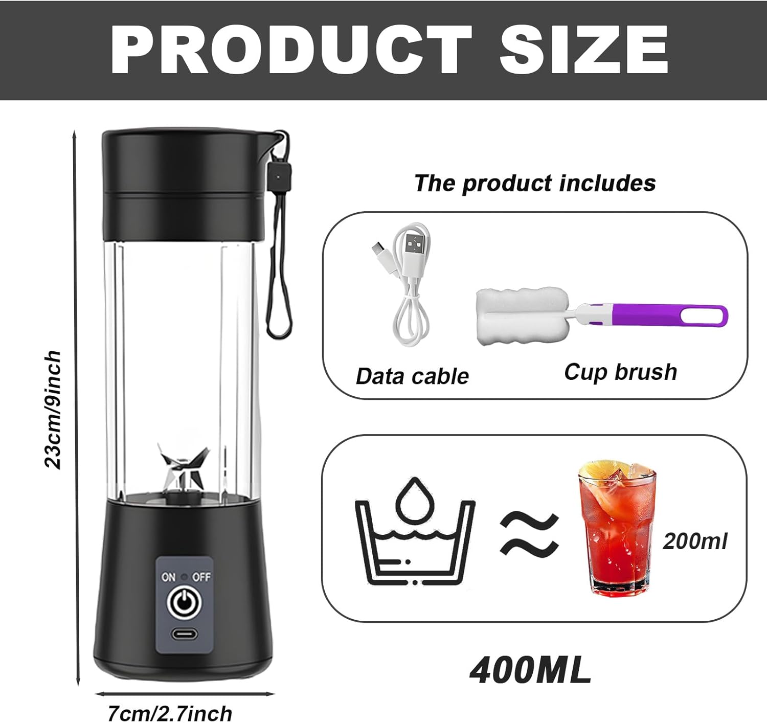- 【Portable Blender】Der Tragbarer Mixer hat ein Fassungsvermögen von 400ML, kompakt und einfach, einfach zu bedienen, ziehen Sie einfach die Mixerflasche und die Basis fest, klicken Sie zweimal auf die Taste, und Sie können köstliche Getränke