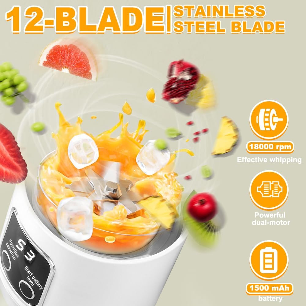 - 12 Blades: Dieser Tragbarer Mixer Smoothie Maker To Go ist mit 12 Klingen aus 304 Edelstahl ausgestattet, die mit einer Geschwindigkeit von bis zu 18000 rpm, Machen Sie in nur 45 Sekunden nahrhafte Shakes und Smoothies.