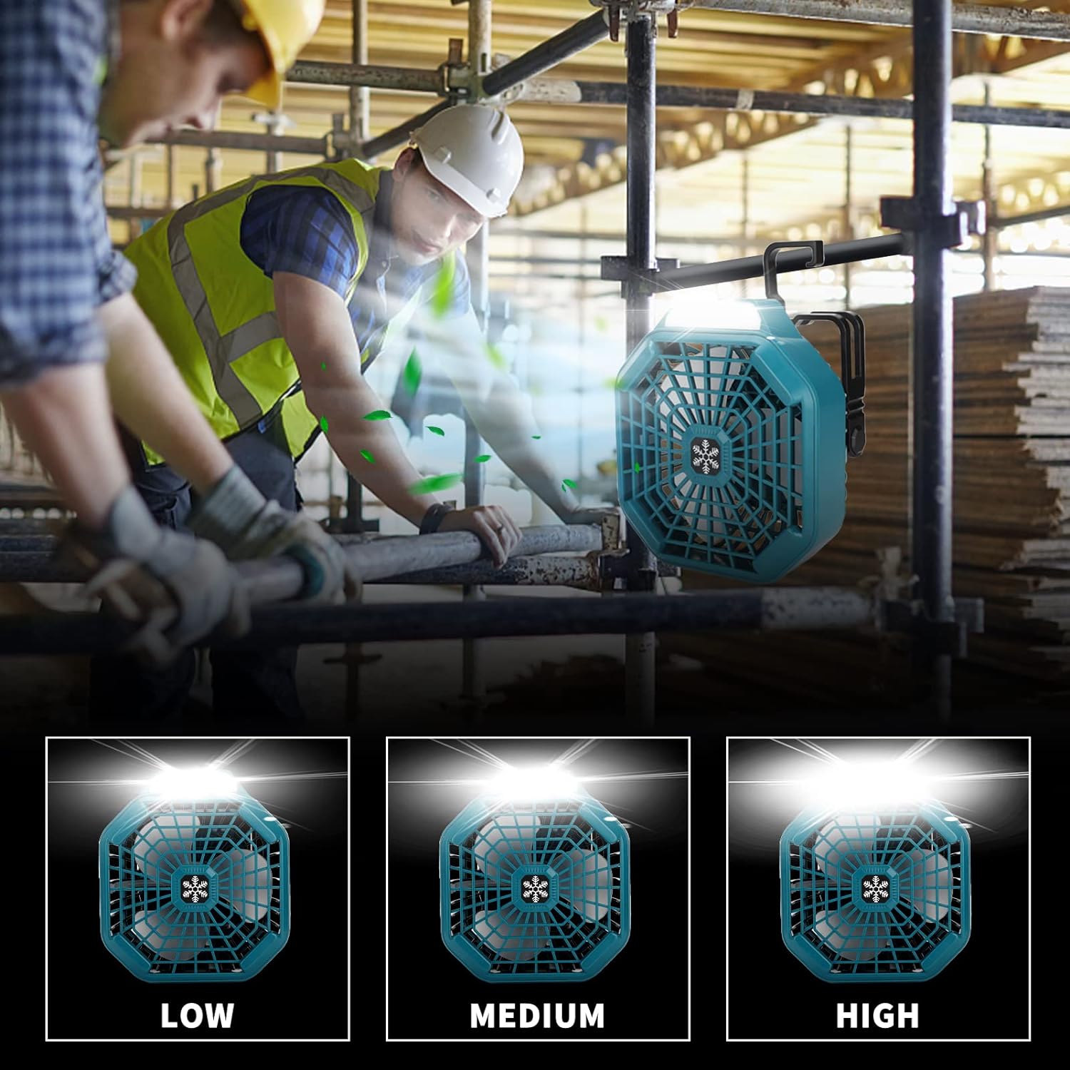 - ❆【2 in 1 batteriebetriebener Lüfter】Dieser 6,7-Zoll-Industrieventilator funktioniert mit Makita-Batterie (nicht im Lieferumfang enthalten), LED-Lampe und Lüfter-Kombination kann Ihnen helfen, in einer heissen Werkstatt mit dem tragbaren