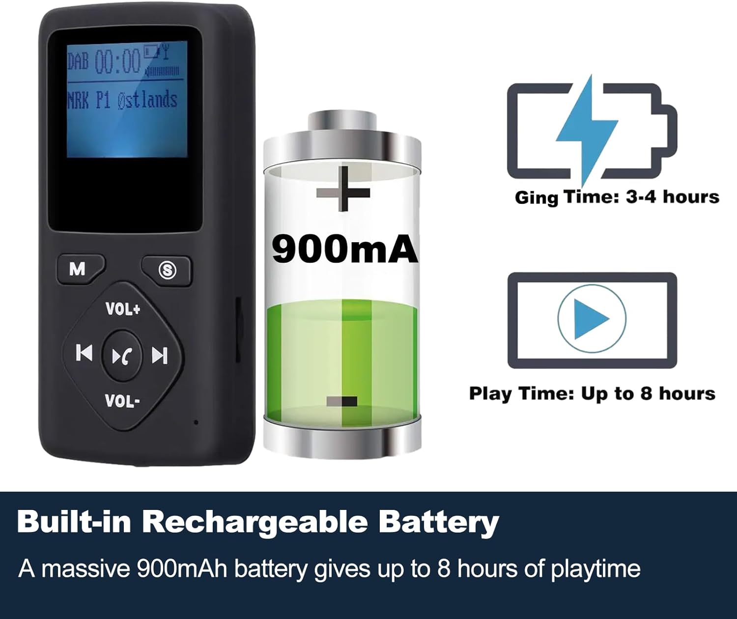 - TASCHE UND TRAGBAR:Tragbarer DAB-Digitalradio-Player, leicht zu tragen, normalerweise zum Wandern, Reiten, Laufen, Fitness und anderen Gelegenheiten.