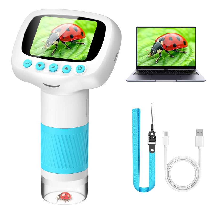 - 【Tragbares Design für kleine Hände】Ein Mini Mikroskop für Kinder mit überragender Betrachtungsqualität! Das 2.0-Zoll IPS Display bietet breitere Betrachtungswinkel und lebendige Farben und schont dabei die Augen. Der leichte Körper, kombiniert