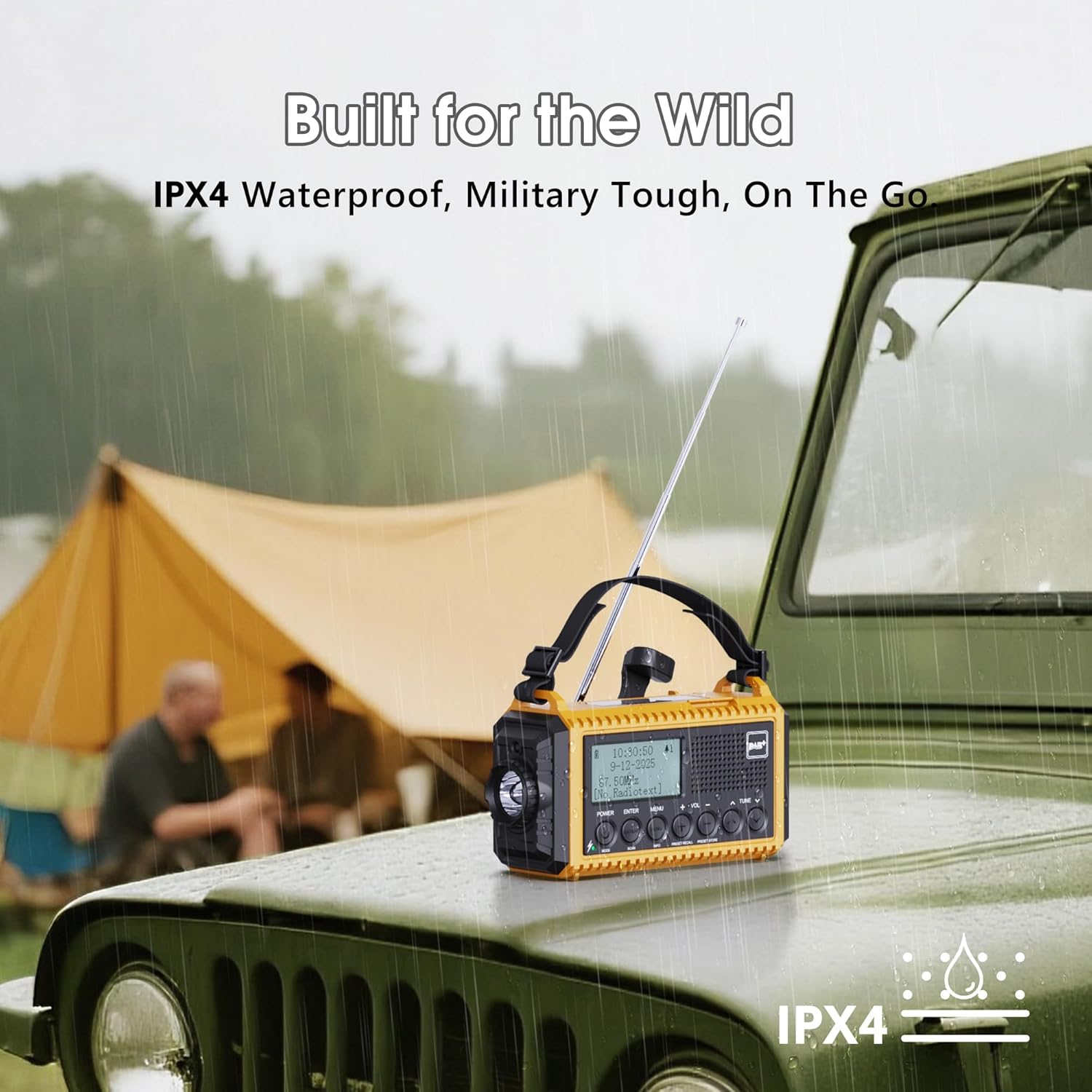 • 【Wetterfest und Handsfree】: Das solarpanel kann das radio an einem sonnigen tag draussen aufladen. Die Handkurbel kann das Radio mit Strom versorgen und die Batterie bei Stromausfall sichern. Der kompakter Grösse & Gewicht und Wasserdicht für