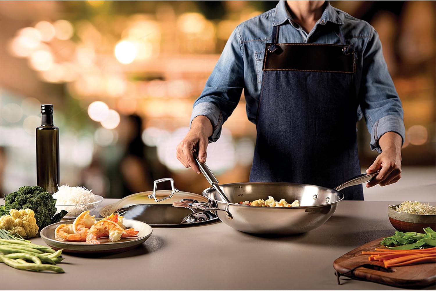 • Dreilagig: Wok mit dreilagiger Konstruktion (Edelstahl + Aluminium + Edelstahl) für gleichmässige Wärmeverteilung und effizienteres Kochen.